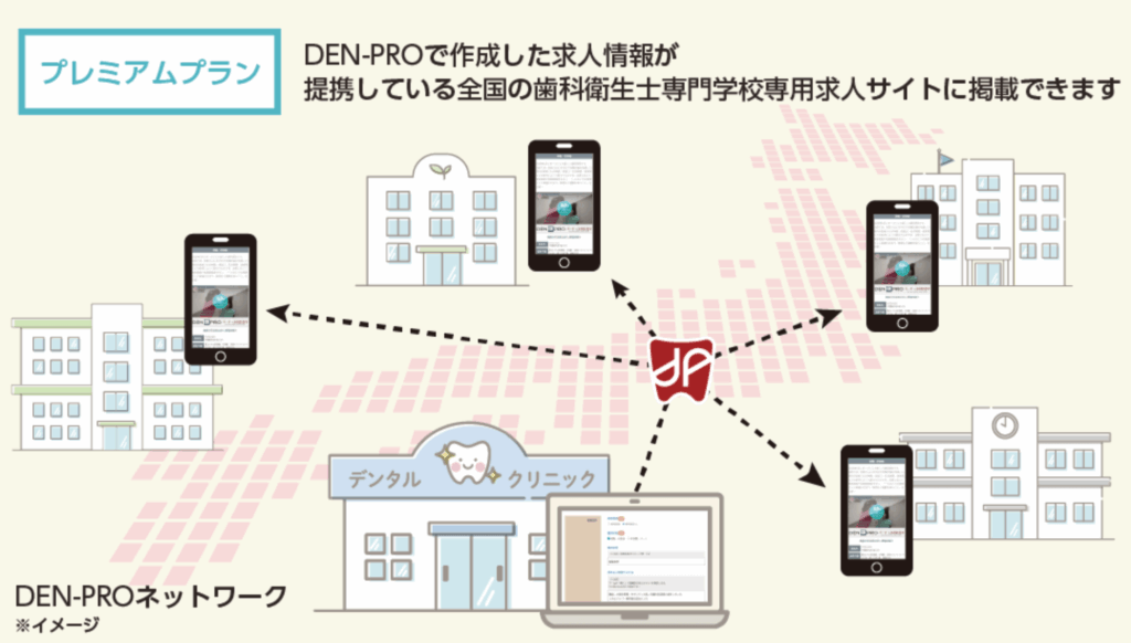 新卒採用の競争が激化するなか、DEN-PROは専門学校ネットワークを活用した強みを持っています。提携する歯科衛生士専門学校への求人一括掲載に対応しており、新卒採用に力を入れたい歯科医院の心強い味方となってくれるでしょう。